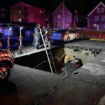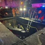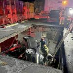 Images posted on the Emsworth Volunteer Fire Company’s social media account show the vehicle fell through a paved parking space into a garage unit underneath, landing on its side.