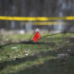 A danger alarm flag at the site of a fatal house explosion on Tuesday.