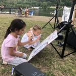 New friends Abigail Cruz, 6, of Aspinwall and Nora Gahed, 4, of Oakmont drew a picture with markers by the performance tent across from 3 Rivers Outdoor Company’s Outpost.