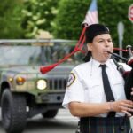 Participants included the Fox Chapel Area High School Marching Band, antique cars, Scouts, first responders, animals including a horse-drawn trolley, and pipers and drummers.