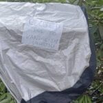 The little library currently is covered with a tarp and includes a handwritten sign saying it’s closed because of vandalism.