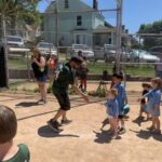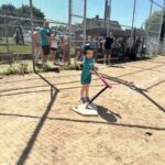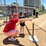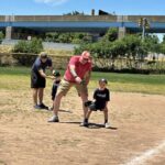 Aspinwall police Chief Dave Nemec coaches a young player June 15 during Opening Day of tee ball at the borough’s recreation fields.