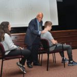 Dr. Cyril Wecht demonstrates to Fox Chapel Area High School the theory behind the JFK assassination while he was riding in the motorcade in Dallas in 1963.