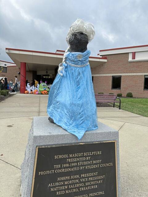 Even the fox statue outside Fox Chapel Area High School got into the fun, dressed as Queen Elsa from “Frozen”.