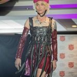 Model Suzan Falvey of Point Breeze works the runway in a dress made from bicycle tubes and Kaufman’s bags. The outfit designed by Elaine “Lane” Root of Indiana Township took first place at the 2019 Salvation Army Garbage Bag Gala. Designers were challenged to take everyday items like plastic bags and create wearable fashions.