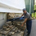 They’re cleaned and stacked and stacked on pallets to provide a surplus of bricks that can be used for repairs.