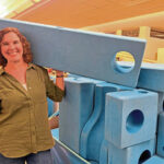 The blue, oversize Imagination Playground pieces can be assembled like Lincoln Logs or Legos.