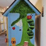 At Dorseyville, the “Fox Box” is brightly painted with literary references such as the red-and-white striped hat from Dr. Seuss and the green caterpillar made famous by Eric Carle.
