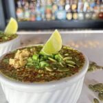 The Sikil Pa’ak is from the cuisine of southern Mexico. It is a creamy dip made of roasted pepitas (pumpkin seed), fresh orange juice, lime, cloves and garlic and served with house-made tortilla chips.