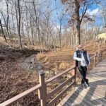 Homeowner Dr. Allen Axelson stands on a bridge over a stream on his property for sale in Upper St. Clair. (Joyce Hanz | TribLive)