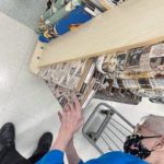 When she finds what she needs, she places it on the seat of the walker and keeps moving. Her daughter, Karen Culley, transfers the fabric pattern to a shopping cart.
