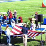 Students from Wyland Elementary and members of Cub Scout Pack 13 and Girl Scout Troop 16718 were given the opportunity to retire the colors. They folded a giant American flag 13 times into the shape of a triangle.