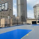 There is a podcast room, a gym, a rooftop heated swimming pool and basketball court that becomes an ice-skating rink in the winter. The cost is $1,600 per month for a studio.