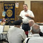 Titled “The History of 9/11,” the ceremony began with Rotary President Mike Wargo playing the trumpet for the National Anthem, followed by the Pledge of Allegiance and a moment of silence.