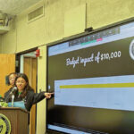 Team members Salma Mukhtar, Emma Parrish and Vivian Rader made a presentation and thanked the board at a recent meeting for previous funding, which has helped with travel expenses and acquiring a workspace for the team.
