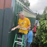 In addition to the Week of Caring volunteers, Murrysville Boy Scout Thomas Hieber also was at the food bank on Thursday, working alongside his parents, Robert and Amy, to repaint the food bank building’s foundation as his Eagle Scout project for Troop 208.