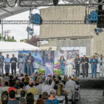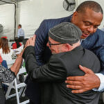 Winds whipped as the program began, followed by light rain that lowered temperatures a bit on a steamy Sunday. Visiting dignitaries included CNN journalist Wolf Blitzer, Gov. Josh Shapiro and second gentleman Doug Emhoff, husband of Vice President Kamala Harris. The three men are Jewish, and all gave speeches.