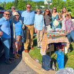 Sean Currie, Jackie Cavanaugh, Brian Curren, Patrick Curren, Jennie Griffin, Erin Curren, Maya Curren, and Alden Griffen all gathered for a photo in front of their spread. Everyone was there to celebrate Conor Griffin, Max Currie and Isabel Curren, the graduates.