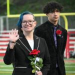 Before the game, last year’s homecoming queen, Maddy Morris, crowned the new king and queen — Ethan Guszczynski (boys basketball) and Morgan Duty (Norhian/yearbook) — as well as first runners-up Joey Lutz (football) and Niamh Greer (senior class) and second runners-up Ella Crowley (girls cross country) and Simon Holderny (band).
