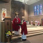 Miller was accompanied by Deacon Mike Kelly in the procession of remembrance, a ritual done for the closing of a church. The priest goes to some of the key locations such as the pulpit, altar and reclamation room and highlights what took place.