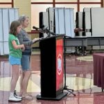 Katharine Sanchez (right) and her daughter, Violet, 10, a Westinghouse Arts Academy student, address Penn Hills School Board members at the Aug. 21 meeting.