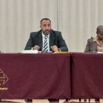 Brian Sanders, a Westinghouse Arts Academy parent, addresses Penn Hills School Board members during the Aug. 21 meeting.