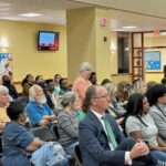 Marian Sefcik, president of the Westinghouse Arts Academy Family Teacher Organization and a grandparent of a senior there, addresses Penn Hills School Board members at the Aug. 21 meeting. “I find it difficult to see how this is safe for students,” she said.