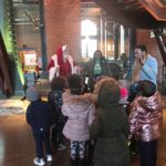 Santa Claus visits with some children from Brightside Academy after the news conference for Comcast Light Up Night on Nov. 6 at the Senator John Heinz History Center in the Strip District.