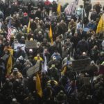 “He’s a traitor. He’s a coward. He’s a commie,” protesters yelled.