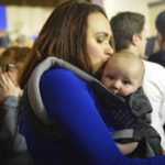 Courtney Weinman of Forest Hills kisses 4-month-old son Winston as they wait for the start of a rally for Democratic presidential candidate Joe Biden at Teamsters Local 249 hall in Lawrenceville on Monday, April 29, 2019. It was Biden’s first campaign stop after announcing his candidacy last week.