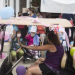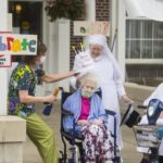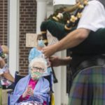 On Wednesday she took part in a parade in her honor just outside the home that included Scottish bagpipes and a police motorcycle escort. She was also feted with flowers.