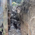 Water rushing around Gitzen’s house cut a deep ditch, exposing her foundation and extending several feet below the footer.