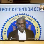 Khari Mosley, husband of Allegheny County Controller Chelsa Wagner, appears in a video arraignment at 36th District court in Detroit on March 25, 2019. The pair were charged with resisting arrest and obstructing the police during an incident at the Westin Book Cadillac hotel in Detroit on March 6.