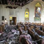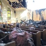 The interior of the sanctuary of Sheridan United Methodist Church after a fire heavily damaged it. pic.twitter.com/0qmrgzppP6