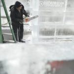 Shawn Smith of Mastro Ice Inc. places a block of ice in the Cool Down for Warmth Ice House in Market Square on Tuesday, Jan. 22, 2019, The annual two-day event hosted by Dollar Energy Fund, now in its fifth year, is held to raise funds and awareness about those in the region who are at risk of utility service termination.