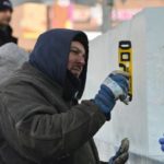 Nat Mastro of Mastro Ice Inc. works on the Cool Down for Warmth Ice House in Market Square on Tuesday, Jan. 22, 2019, The annual two-day event hosted by Dollar Energy Fund, now in its fifth year, is held to raise funds and awareness about those in the region who are at risk of utility service termination.