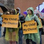 School choice advocates representing parents, students and community members from Pittsburgh-area charter schools gathered outside the convention center in the rain Saturday morning ahead of the forum.