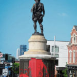 The 99-year-old Doughboy Statue in Lawrenceville was doused with red paint between Sunday night and Memorial Day. Hammers and sickles were painted on the monument, along with the message “June 19, 1986! Glory to the Day of Heroism!”