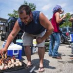 Randy Ludwick of Monongahela grills kabobs and hotdogs while tailgating with friends and family outside Heinz Field on Saturday, May 18, 2019.