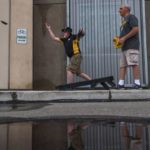 Brothers-in-law Jim Lashinsky and Jim Ross (background) both of Johnstown, toss a game of corn hole outside Heinz Field on Saturday, May 18, 2019 while concert-goers prepare for the Garth Brooks performance set to begin at 7 p.m.