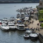 Country music fans arrive outside Heinz Field from the Gateway Clipper fleet on Saturday, May 18, 2019 while concert-goers prepare for the Garth Brooks performance that is set to begin at 7 p.m at Heinz Field.