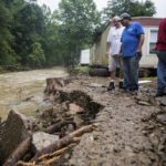 Residents start to assess damage to their property at a mobile home park along Kirk Road in Plum Borough on July 22, 2019.