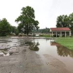 The baseball fields along New Texas Road in Plum were damaged due to flooding on Monday, July 22, 2019.