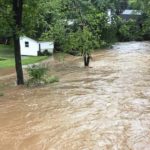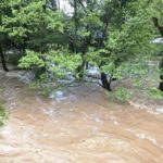 Puckety Creek near Myers Drive in Plum rages over its banks on Monday, July 22, 2019.