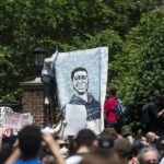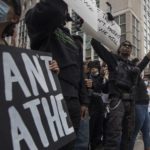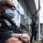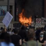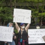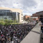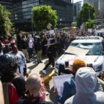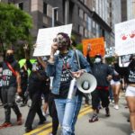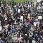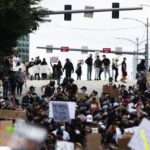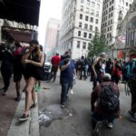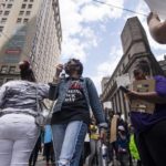 Protestors in Pittsburgh demonstrate following the death of George Floyd while in police custody in Minneapolis, on Saturday, May 30, 2020.
