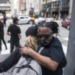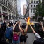 Protesters in Pittsburgh demonstrate following the death of George Floyd while in police custody in Minneapolis, on Saturday, May 30, 2020.