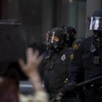 Pittsburgh police respond to demonstrations following the death of George Floyd while in police custody in Minneapolis, on Saturday, May 30, 2020.