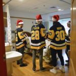 Donning Santa caps, the players stopped by several rooms at the hospital to drop off gifts such as stuffed penguins, hats and calendars. They spent time talking, posing for photos and signing autographs for the children and their families.