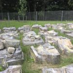 The Pittsburgh Pubic Works Department saved rocks from the face of the Highland Park pedestrian tunnel and numbered them so they can be replaced during a restoration. They are being stored in two fenced areas of the park.