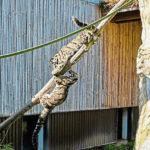 Mammal keeper Mark McDonough said that after a little trepidation, the cats began to bond and play together. Things were going so well inside that they allowed the pair into the outside exhibit, where they’ve been climbing trees and chasing each other.